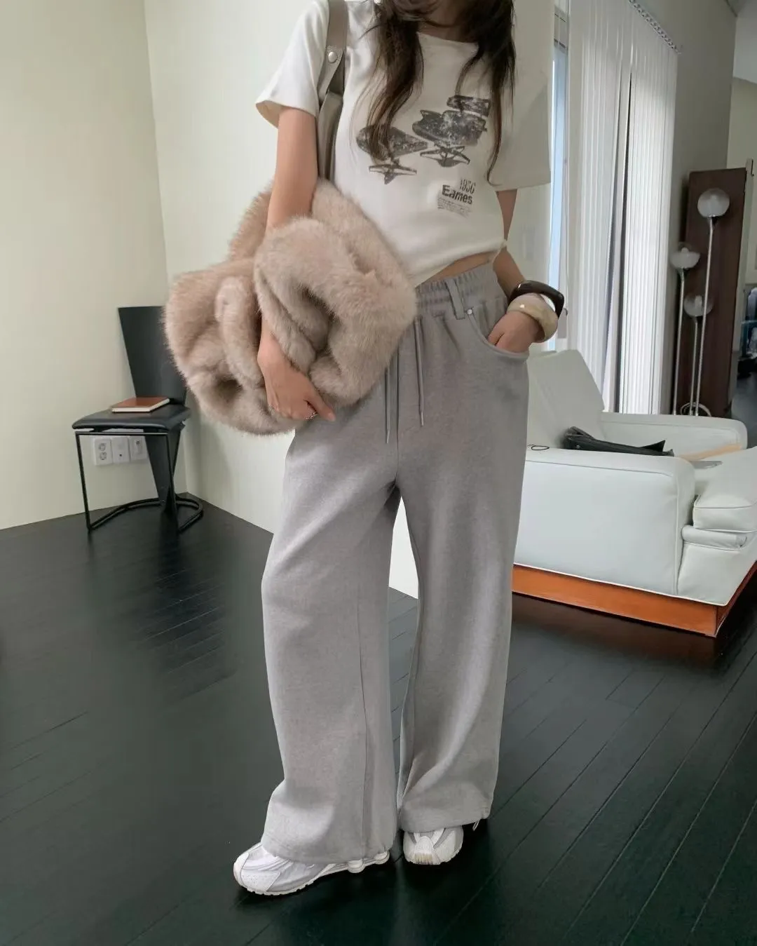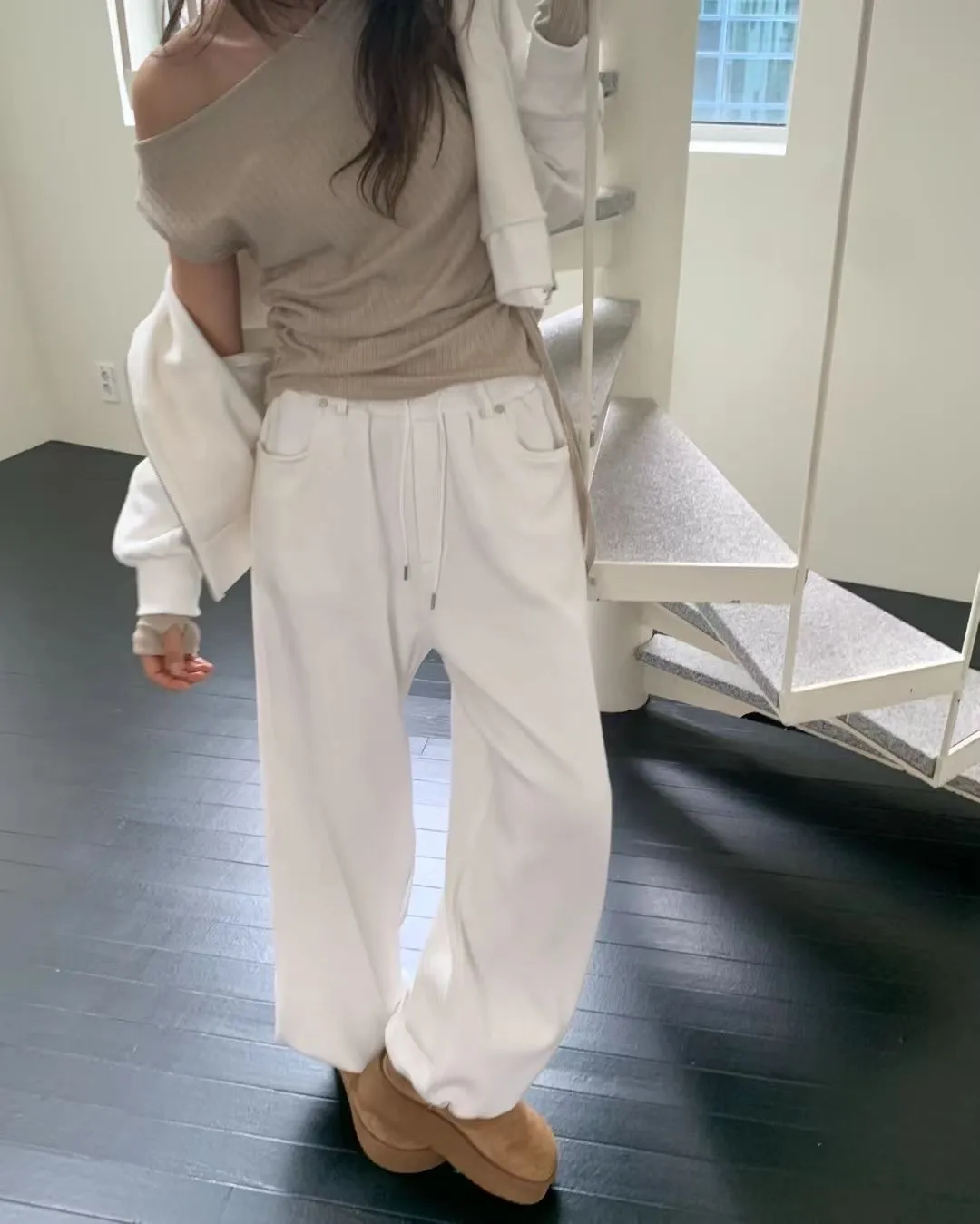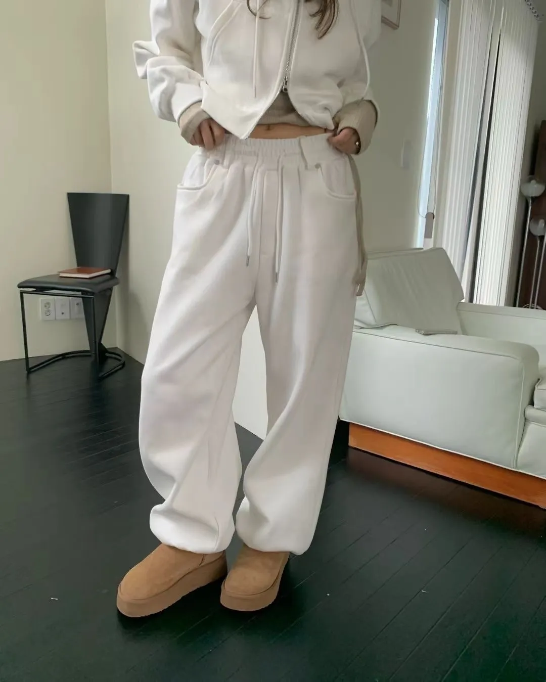抽繩休閒棉寬褲