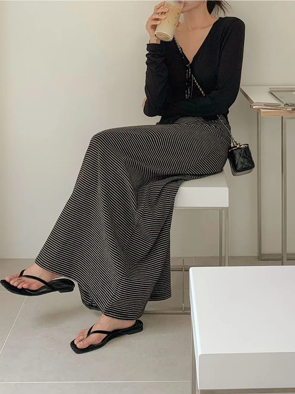 慵懶條紋裙